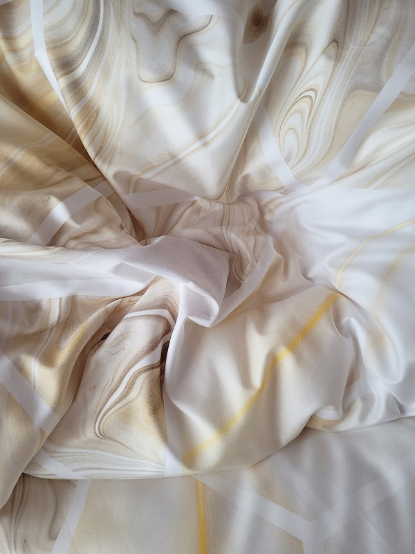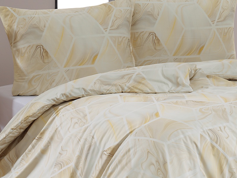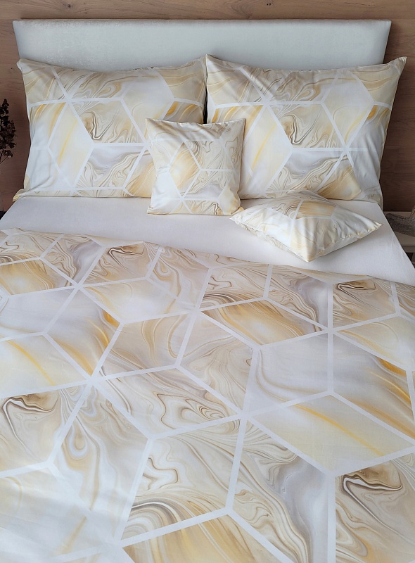 Toužíte po výjimečném bytovém doplňku? Ložní povlečení Oasis v provedení luxusního bavlněného mako saténu vás nadchne. Jemný mramorový vzor ve světle žlutých, krémově smetanových a pastelově šedých odstínech vyniká díky nejmodernějšímu digitálnímu tisku, který zajišťuje precizní vyobrazení všech detailů.