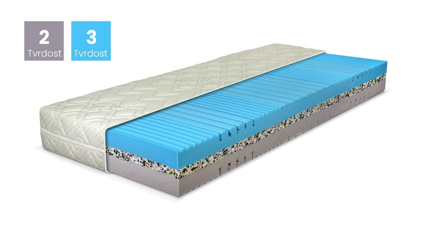 7-zónová matrace o dvou tuhostech studených HR pěn zdůrazněná originálním prořezem v oblasti ramenní kolébky a pánevní oblasti. Výborně se přizpůsobí tělu. Studené pěny jsou dokonale odvětrané a povrchově chladnější než klasické PUR pěny, zajišťují dokonalou propustnost vzduchu. Jádro matrace je opatřeno separační tkaninou a snímatelným, pratelným, zónově prošitým potahem. Díky použití kvalitních pěn matrace zaručuje vysokou životnost a je pro váhovou kategorii do 130 kg.
