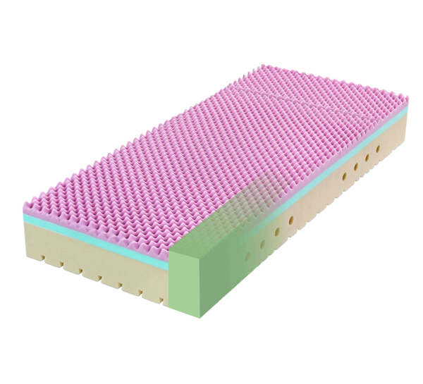 • Hybridní pěna Elastická vrstva zvyšující odrazovou pružnost, vzdušnost matrace a pocitovou pevnost. Zajišťuje optimální klima a napomáhá předcházet pocení.