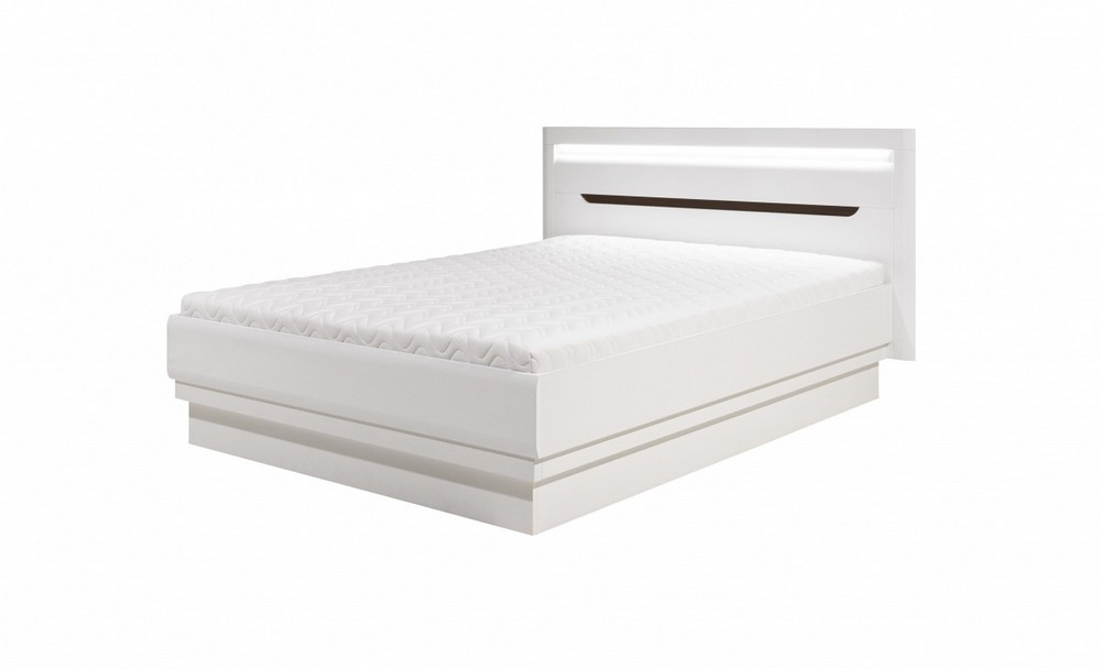 Nabízíme vám postel z velmi speciální kolekce. Sami si můžete zvolit, zda bude nábytek celý bílý nebo s tmavou lištou (dub maggio). Na výběr máte ze 3 variant (140 cm, 160 cm a 180 cm). Postel je dodána bez matrace, roštu a úložného prostoru. Korpusy jsou vyrobeny z kvalitní laminové desky a MDF. Před nechtěným poškozením je chrání ABS hrany. Můžete si přikoupit LED osvětlení horního panelu.Veškeré informace o kolekci IRMA a ostatní produkty této kolekce najdete zde.