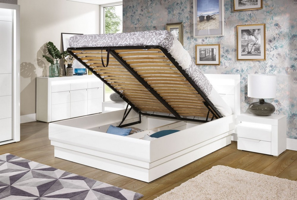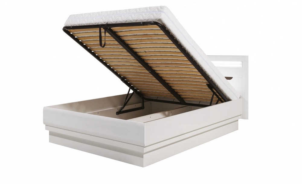 Nabízíme vám postel z velmi speciální kolekce. Sami si můžete zvolit, zda bude nábytek celý bílý nebo s tmavou lištou (dub maggio). Na výběr máte ze 3 variant (140 cm, 160 cm a 180 cm). Součástí je kovový rošt a úložný prostor. Postel je dodána bez matrace. Korpusy jsou vyrobeny z kvalitní laminové desky a MDF. Před nechtěným poškozením je chrání ABS hrany. Můžete si přikoupit LED osvětlení horního panelu.Veškeré informace o kolekci IRMA a ostatní produkty této kolekce najdete zde.