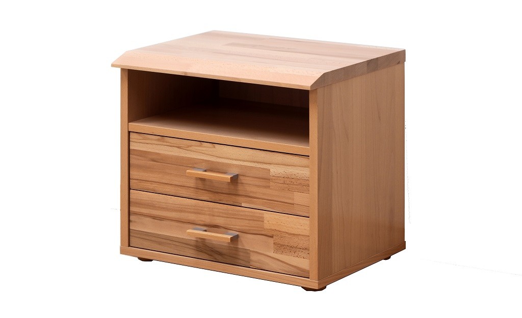 V provedení Buk/Dub se jedná o kombinaci přírodní dýhy (boky, dna a mezistěny), masivního dřeva (horní desky a přední plochy) a masivní bukové překližky (obvody zásuvek a záda komod).