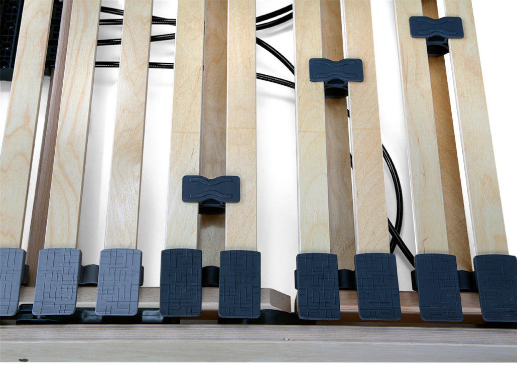 - nastavení tuhosti 6 lamel ve středu roštu