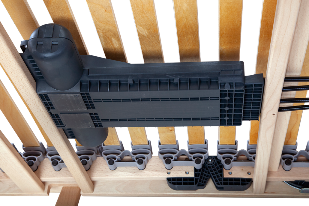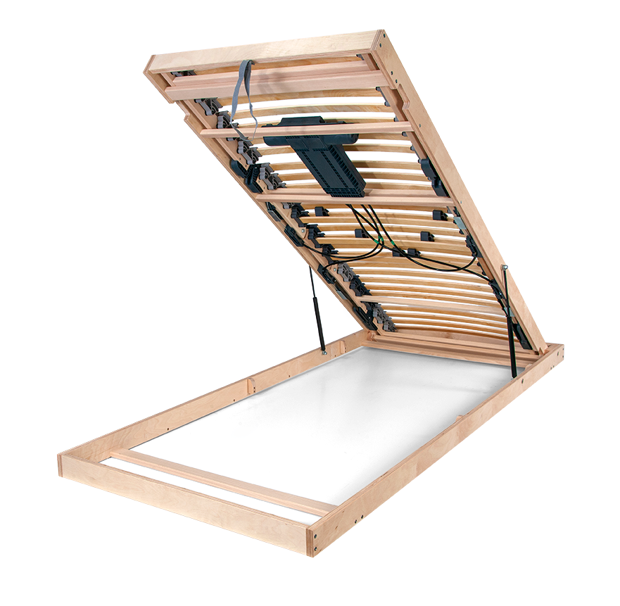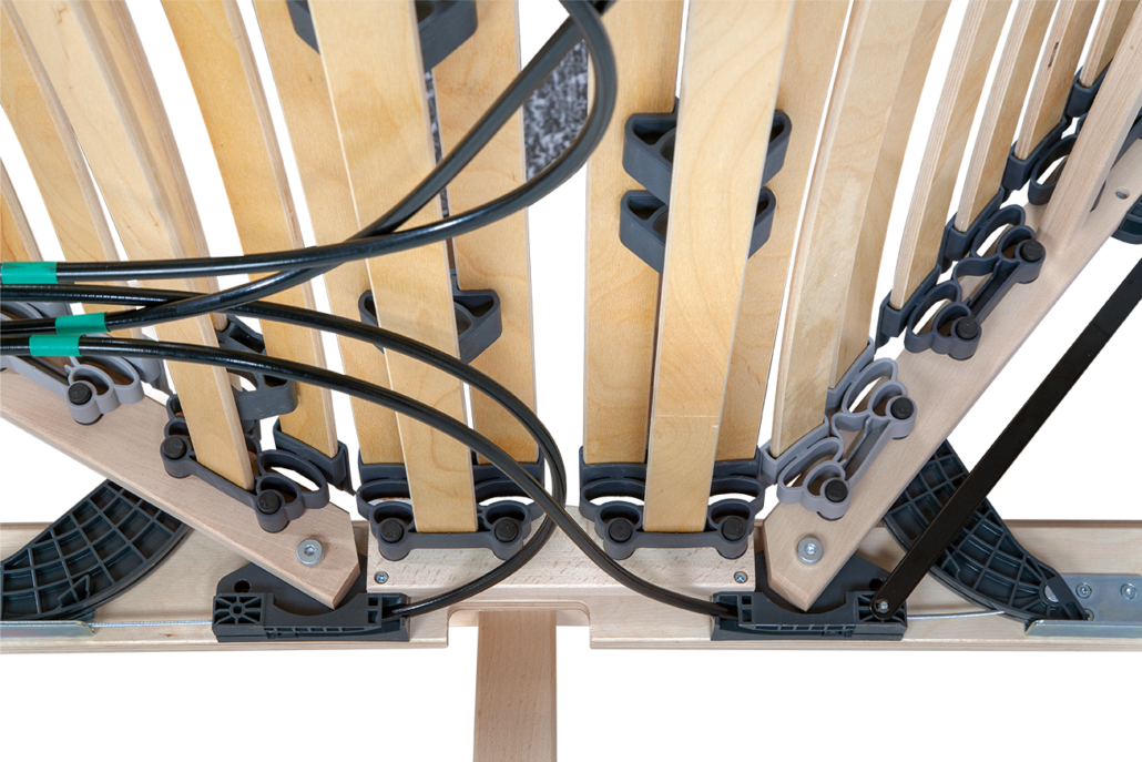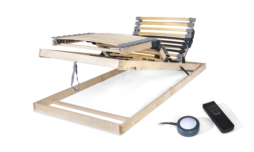 - výklopný lamelový rošt od nohou s polohováním pomocí dvou elektromotorů s bezdrátovým ovládáním